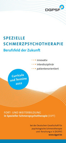 Im ärztlichen Bereich ist dies durch die Weiterbildung “Spezielle Schmerztherapie” geregelt und dort unumstritten. Im psychotherapeutischen Bereich wurde eine vergleichbare Spezialisierung durch eine Fort-/Weiterbildung “Spezielle Schmerzpsychotherapie (SSPT)” gefordert und umgesetzt. Die Zertifizierung “Spezielle Schmerzpsychotherapie” erfolgt bundesweit auf der Grundlage einer gemeinsamen Prüfungsordnung der vier Schmerzgesellschaften:
